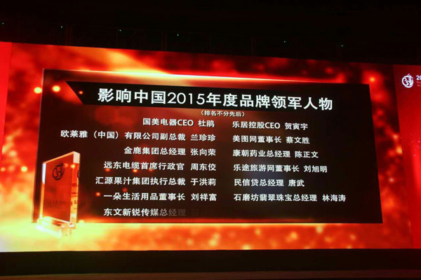2015年度中國企業(yè)領(lǐng)袖與媒體領(lǐng)袖年會(huì)于12月13日在北京隆重召開。據(jù)了解,該年會(huì)由國務(wù)院批準(zhǔn)的中國廣告主協(xié)會(huì)(國務(wù)院國資委主管)、中國人民大學(xué)公共外交研究院、中國傳媒大學(xué)廣告學(xué)院共同主辦,光明日報(bào)社會(huì)活動(dòng)部聯(lián)合主辦。在此次年會(huì)上,近百家企業(yè)參與了本次品牌貢獻(xiàn)榜·年度頒獎(jiǎng)盛宴。