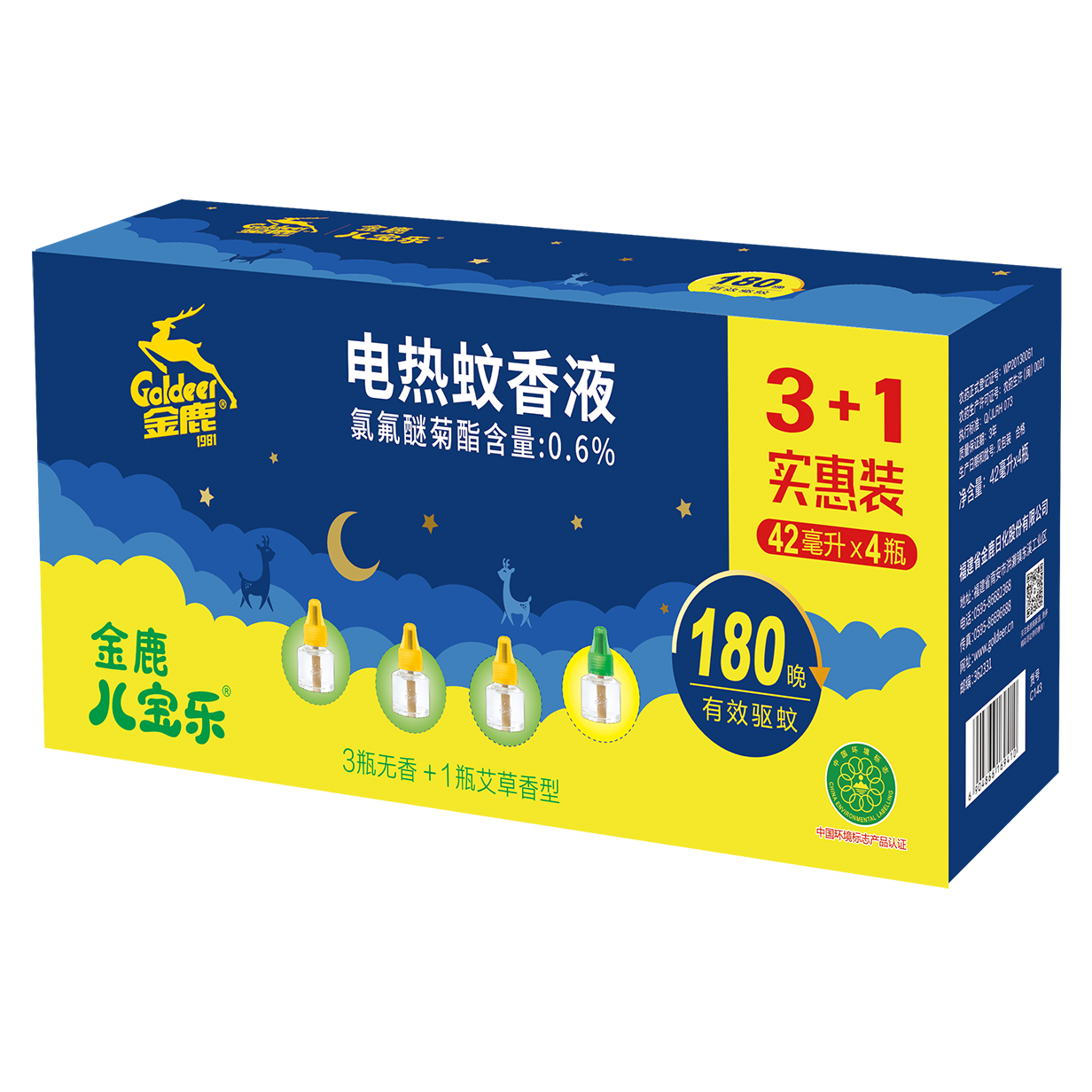 金鹿電熱蚊香液(3無香+1艾草)